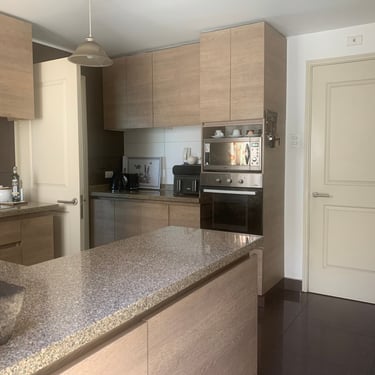 Espectacular departamento con vista despejada. Finas terminaciones, piso de madera, ventanas termopanel. Cocina equipada con isla central. Edificio cuenta con piscina, gimnasio, y seguridad 24/7. Excelente conectividad.